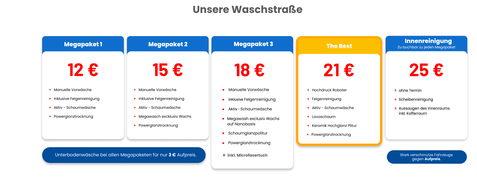 Wenn man die Waschstraße in der Zeit von 8-10 Uhr aufsucht, dann zahlt man für jede Wäsche nur 12 Euro. Das finde ich ist ein fairer Preis. Dafür muss man dann etwas Zeit investieren, denn es ist schon voll da. Aber das Warten lohnt sich.